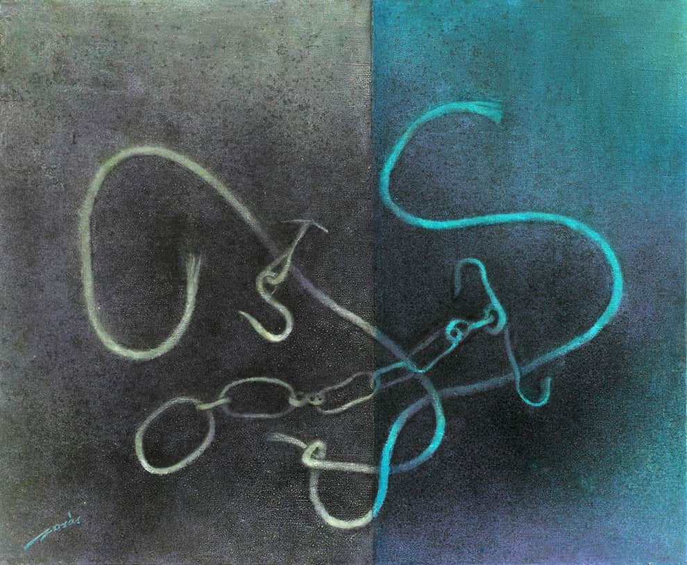 La mejor sin duda de las exposiciones que le hemos visto a este barcelonés, afincado en Reus, en la que demuestra una indudable seguridad de planteamiento. Es decir, se trata de uno de los artistas interesados en unir, mediante la pintura, elementos opuestos, susceptibles, cada uno de ellos en sí mismo de bastar como soporte a un determinado pintor. Estos elementos son en su caso la abstracción matérica y la figuración lineal. Dicho en otras palabras, Nosàs logra un notable equilibrio entre dos contrarios perfectamente conjugados en una composición de estructura octogonal. Algo implícito incluso en el título, como en los óleos "Matèria i forma" y "Matèria i Venus". Una opción interesante con soltura y buena técnica.